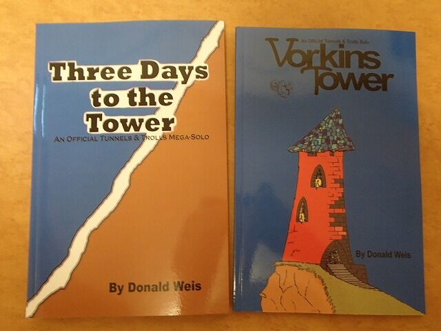 「Three Days to the Tower」は500パラグラフを超える大作ソロ・アドベンチャーで、その続編の「Vorkins Tower」は167パラグラフとやや小ぶりな作品になっています。